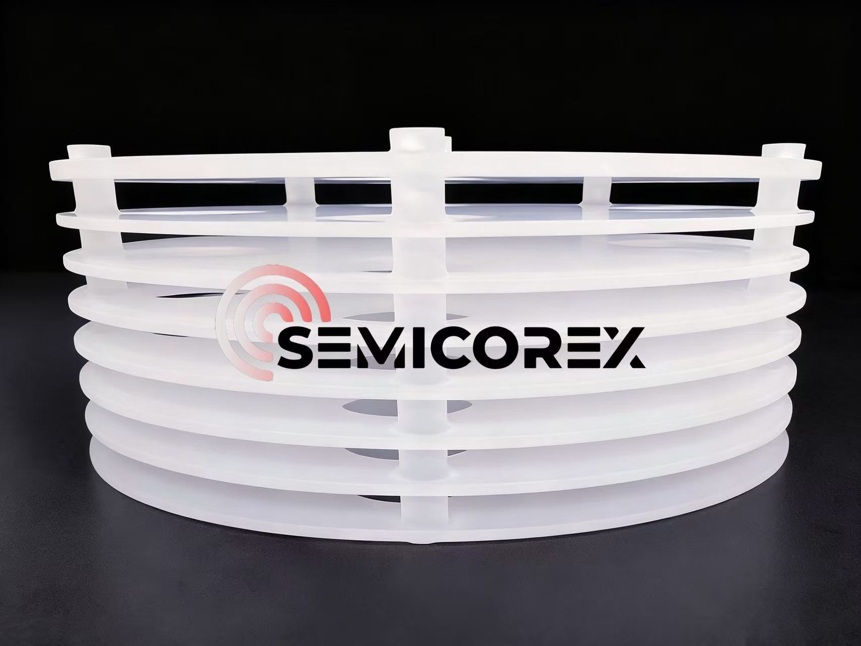 Pojemniki na termosy kwarcoweskładają się głównie z podstawowych elementów, takich jak skorupa, podstawa, kolumna nośna i płyta izolacyjna. Dzięki precyzyjnej konstrukcji kolumn nośnych i występom pozycjonującym, kwarcowe pojemniki termosowe mocno zabezpieczają nośniki płytek krzemowych, zapewniając niezawodne podparcie, zapobiegając w ten sposób przemieszczaniu się podczas procesów produkcji półprzewodników w wysokiej temperaturze. Tymczasem ich wielowarstwowa struktura izolacji skutecznie minimalizuje straty ciepła i utrzymuje stałą temperaturę pieca, aby zapewnić jednolitą grubość warstwy płytek krzemowych podczas całego procesu przetwarzania. Ważnymi elementami gwarantującymi dokładność procedur wytwarzania półprzewodników i jakość produktu są termosy kwarcowe firmy Semicorex.